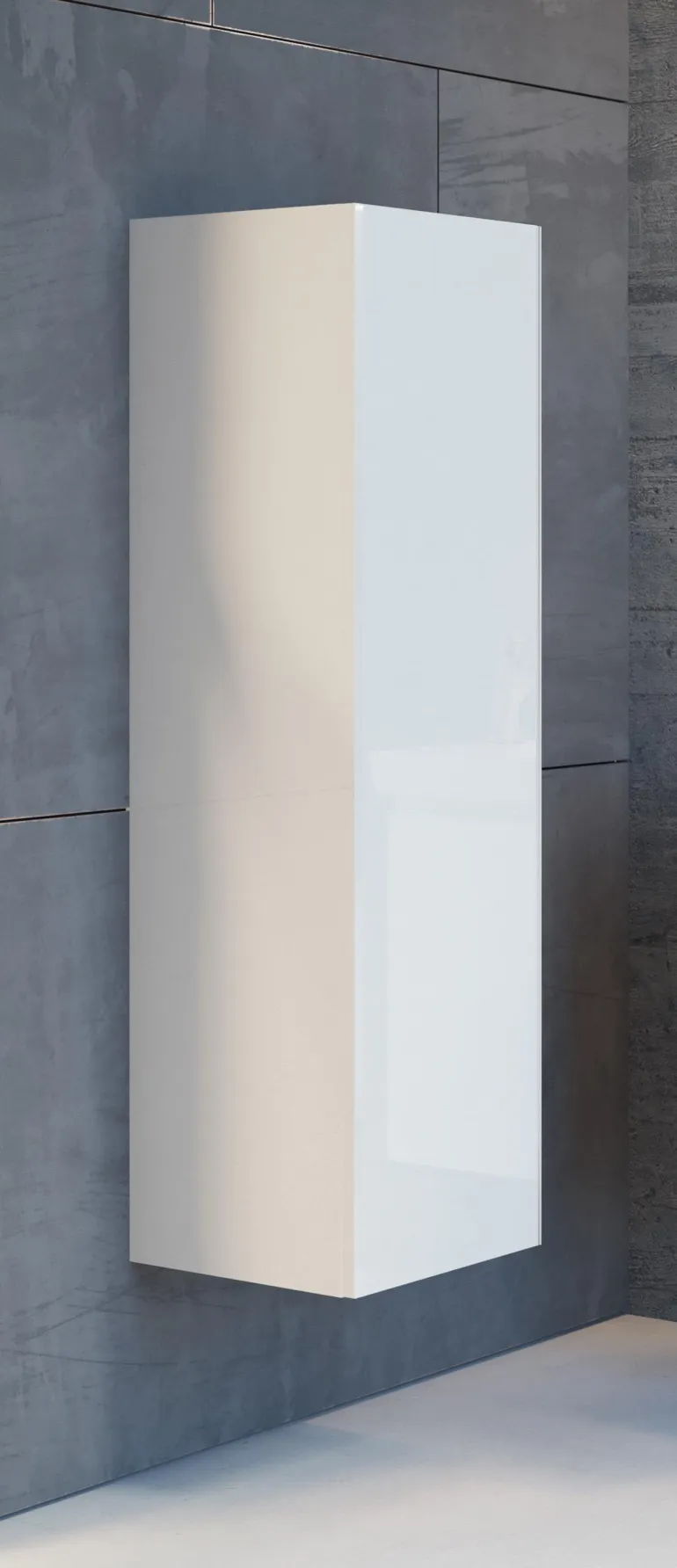 Korkea valkoinen kaappi, joka sopii yhteen Victoria-huonekalusarjan kanssa. Kaappi on varustettu 1 ovella, jonka saranat ovat vasemmalla, mutta se voidaan ripustaa myös oikealle.