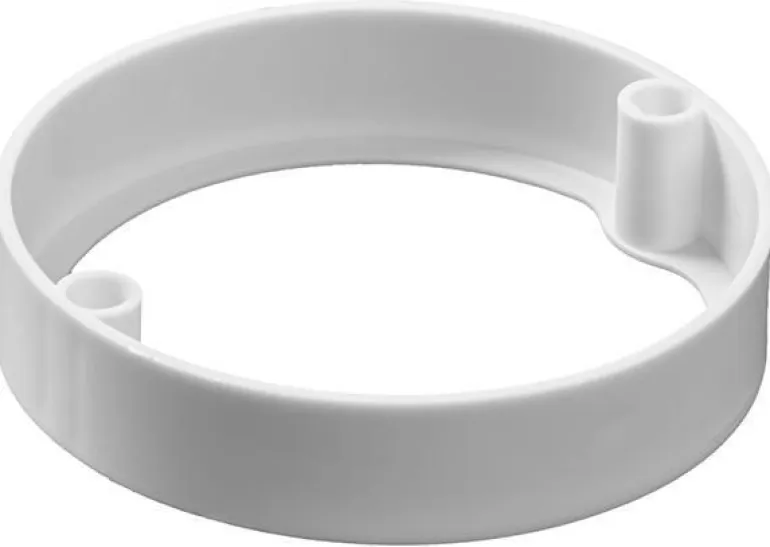 Pyöreä korotusrengas laiterasiaan c/c 60 mm. Valmistettu valkoisesta polyeteenistä. Käytetään, kun rasian reuna täytyy rakentaa seinän tasolle. Lisää mittaa 15 mm.