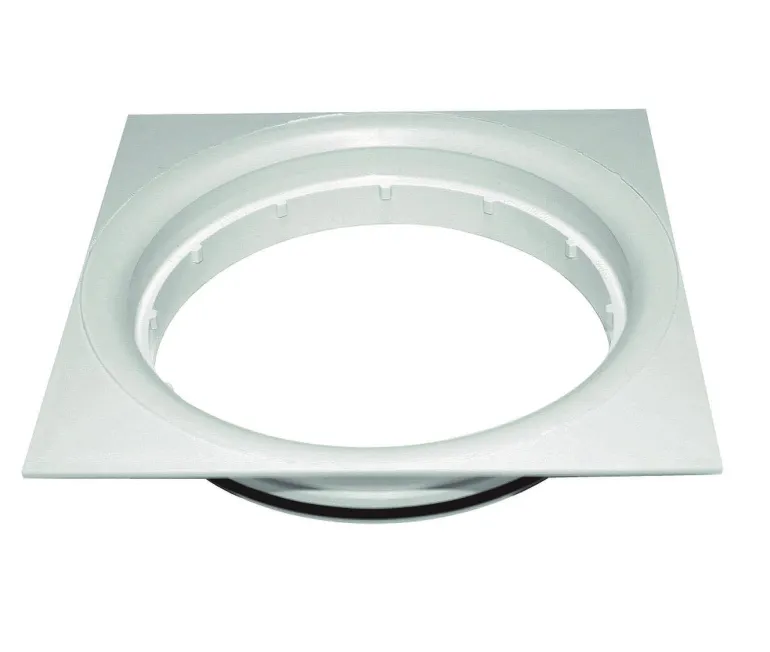 Muovinen korotusrengas neliönmuotoisella laipalla. Mallin koko on 150 mm ja se on yhteensopiva Purus-lattiakaivojen kanssa.