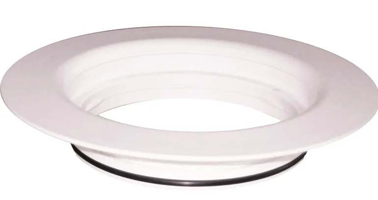 Pyöreällä laipalla varustettu muovinen korotusrengas sopii Purus-lattiakaivoihin, koko 130 mm.