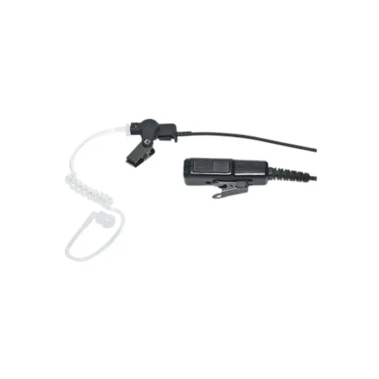 Audiolisävaruste, jossa on läpinäkyvä Eartube, yhdistetään SVB DP405 -radiopuhelimeen. Mikrofoni PTT:llä erillisellä kaapelilla.