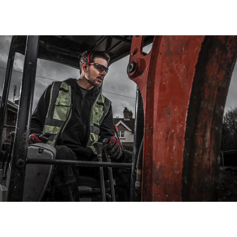 Milwaukeen sangallisia korvatulppia voi käyttää kolmella eri tavalla: pään päällä, leuan alapuolella ja niskan takana. Kääntyvä sanka on turvallinen ja mukava käyttää.