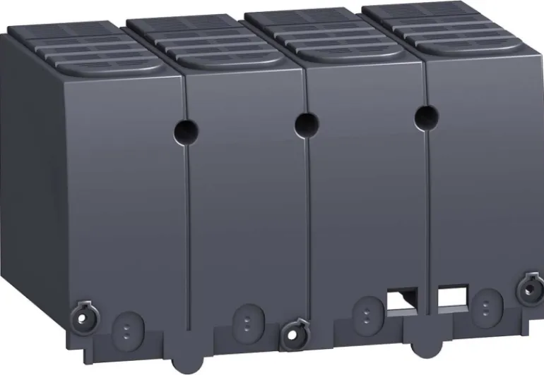 – Yläosa on varustettu liukuvilla säleiköillä, joissa on aihiot kaapelien tai eristettyjen kiskojen tarkkaa sovittamista varten. Takaosa on täysin erotettu kytkentäalueesta. Osittain leikatut neliöt voi irrottaa, jotta kunkin tyyppiset kaapelikenkä- tai kuparikiskoliitännät sopivat niihin.