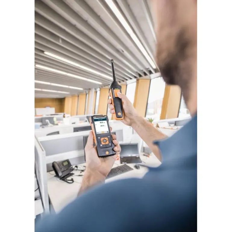Kosteusanturi kiinteällä kaapelilla lämpömittaria Testo 440 varten. Anturin mittausalueet: suhteellinen kosteus on 0–100% ja lämpötila -20…+70 °C. Anturivarren pituus 140 mm, ja halkaisija 12 mm.