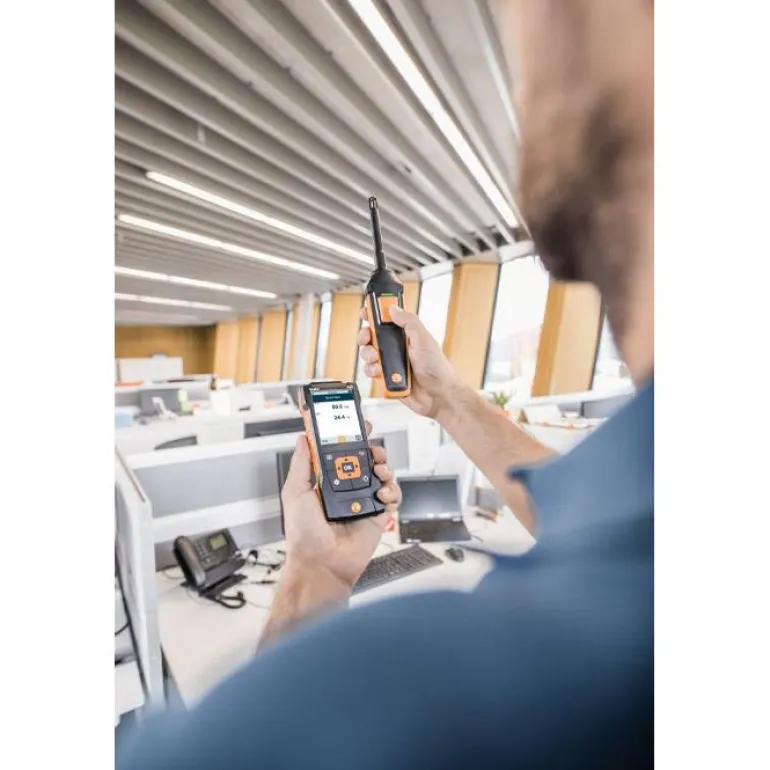 Kosteusanturi Bluetoothilla langatonta yhteyttä varten Testo 440 -lämpötilamittariin. Mittausalueet ovat 0–100 % suhteellinen kosteus ja -20…+70 °C. Anturin varren pituus on 140 mm ja halkaisija 12 mm.
