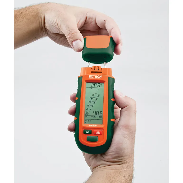 Kosteusmittari soveltuu puun, paperin, tapetin, kiven, pahvin, kipsin, betonin ja rappauksen mittaamiseen. Muisti sisältää kolme puuryhmää ja neljä rakennusmateriaaliryhmää: kalibroitu noin 150 puulajille ja 19 rakennusmateriaalityypille. Indeksitila sisältää ohjelmoitavat korkeat ja matalat arvot, jotka mahdollistavat kosteuden paikantamisen nopeasti vertailevaan mittaukseen nähden. Sisältää vaihdettavat kierteitetyt elektrodipiikit, iskunkestävän kotelon, automaattisen pois-kytkentätoiminnon, joka säästää paristovirtaa, sisäänrakennetun varaustason ohjauksen ja mittauksen varmennustestin.
