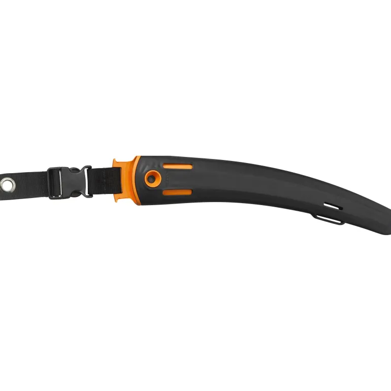 Leikkuusahan kotelo, jossa voit käyttää sekä oikean- että vasemmanpuoleista ripustusta. Se sopii täydellisesti WoodXpert-työkaluvyöhön (Fiskars 1003626).