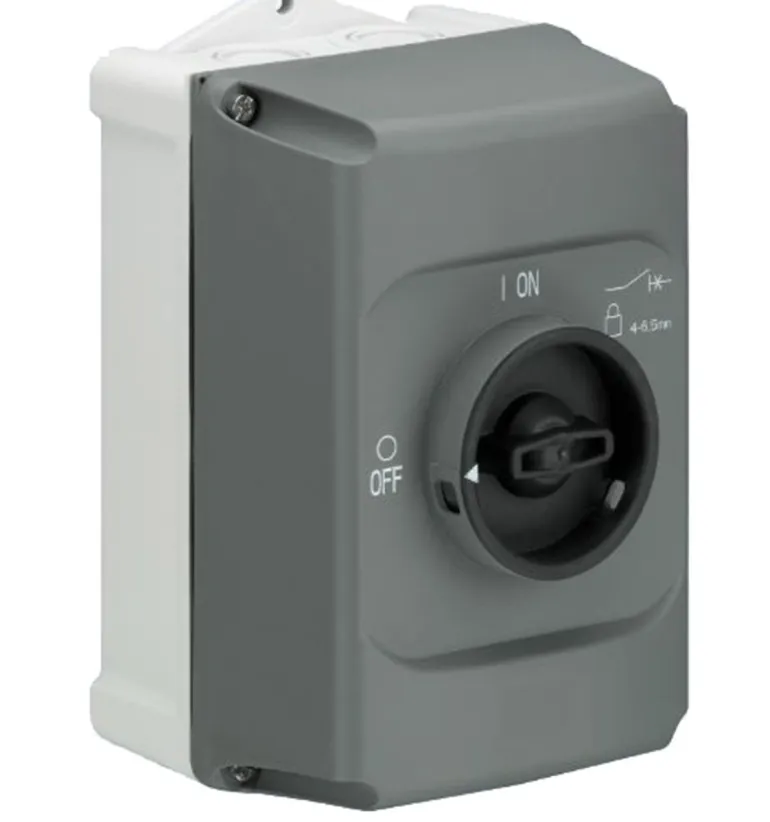 Siinä on tilaa yhdelle MS:lle, jossa on sivulle asennettu kosketin. Lukittavissa enint. 3 riippulukolla, sangan Ø 4–6,5 mm.