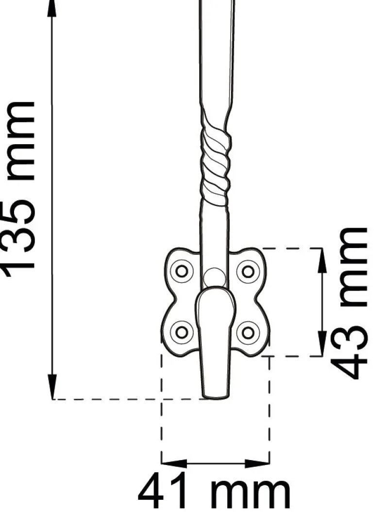 Koukku takoraudasta. Ulkonema 80 mm. Sisältää ruuvit.