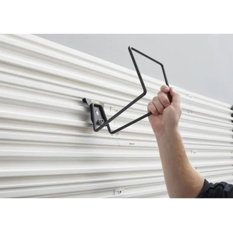 Suuri koukku seinäkiskoon. STANLEY® Track Wall System -seinäkiskoon kiinnitettävä suuri koukku on täydellinen ratkaisu jatkojohtojen, puutarhaletkujen ja köysien ripustamiseen. Saat järjestystä autotalliisi.