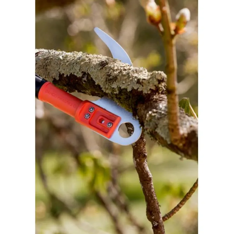 Koukkusovitin karkaistua terästä Bahcon varsiin ASP ja ATP-110-210. Käytetään oksien työntämiseen ja vetämiseen. Reikä karbiinihakaa varten.