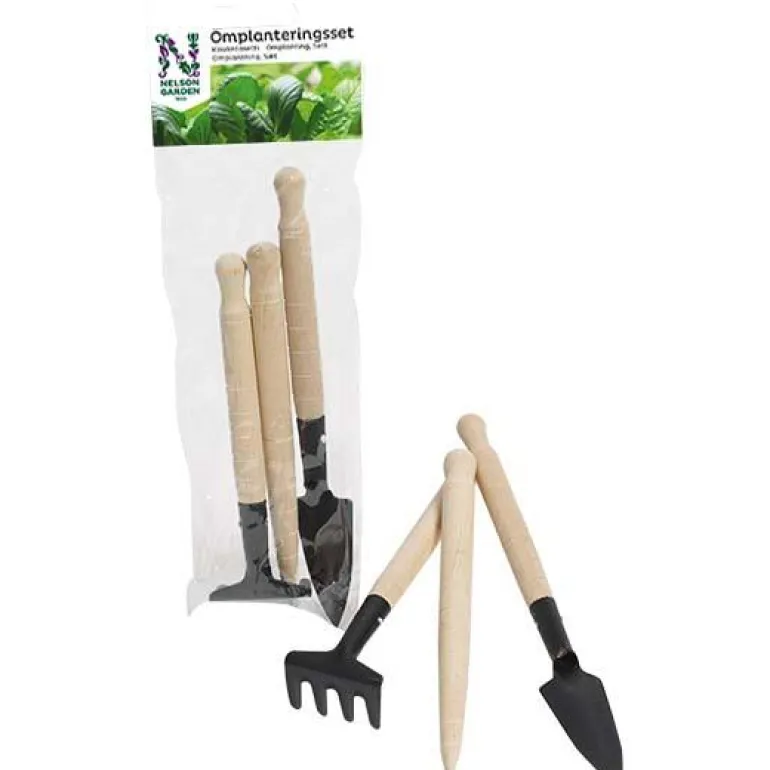 Sievä koulintasetti. Sisältää minilapion ja -haran sekä istutuspuikon.
