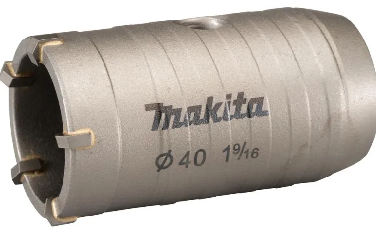 Makitan kruunupora SDS-plus-kiinnityksellä, halkaisija 50 mm. Sopii tiilelle/kevytsoraharkoille.