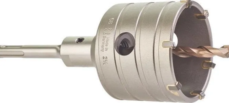 SDS-Plus-kruunuporasarja, 4 osaa: TCT-kruunupora, SDS-Plus-kara, TCT-keskiöpora ja kuusiokoloavain.