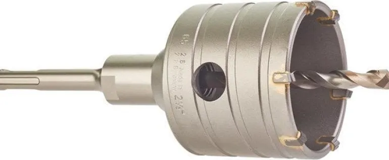 SDS-Plus-kruunuporasarja, 4 osaa: TCT-kruunupora, SDS-Plus-kara, TCT-keskiöpora ja kuusiokoloavain.