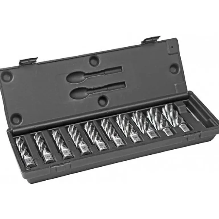 Keernaporasarja, jossa on kymmenen Weldon-kiinnikkeellistä terää 55 mm poraussyvyydellä. Keernaporanterien halkaisija on 12-30 mm.