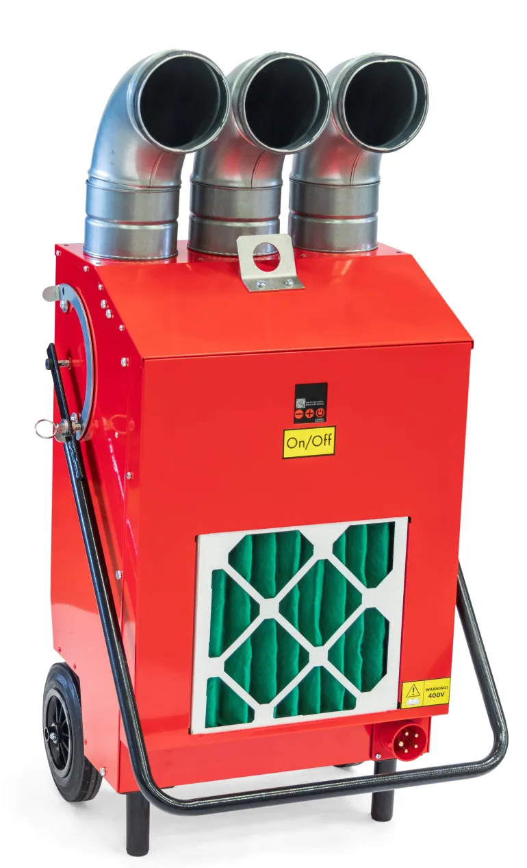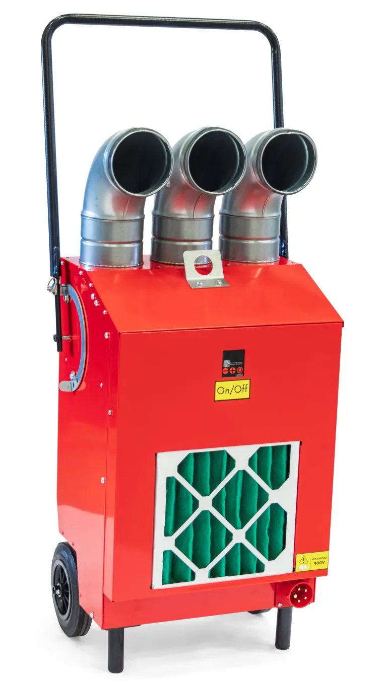 Kuivauspuhallin esimerkiksi rakennus- ja teollisuustiloihin tai muihin vastaaviin tiloihin. Suunniteltu jopa 350 m²:n (1225 m³:n) pintojen lämmittämiseen ja kuivaamiseen erittäin tehokkailla puhallinmoottoreilla, jotka levittävät ilmaa laajoille alueille ja puhdistavat samalla ilman G4-suodattimella.