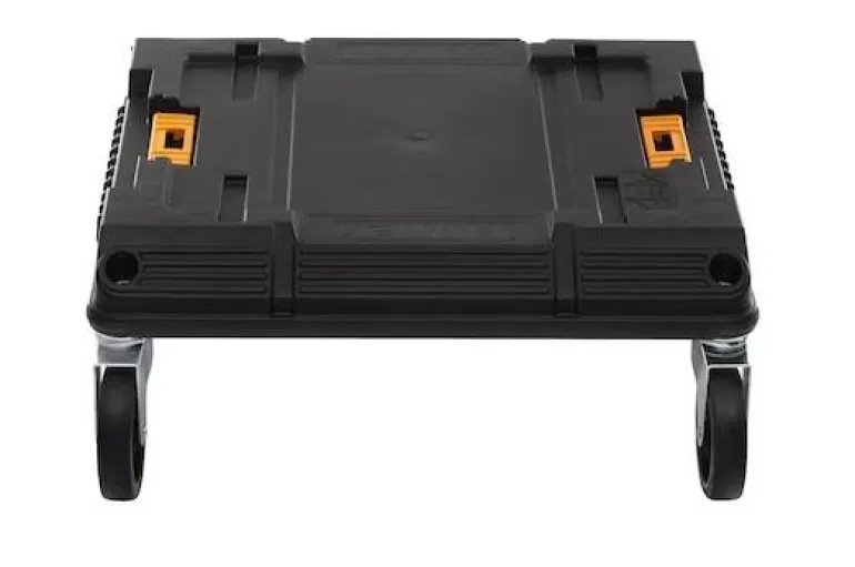 Kuljetusalusta Dewaltin säilytyslaatikoille laukkujen helpompaa käsittelyä varten. Varustettu vankoilla pyörillä.