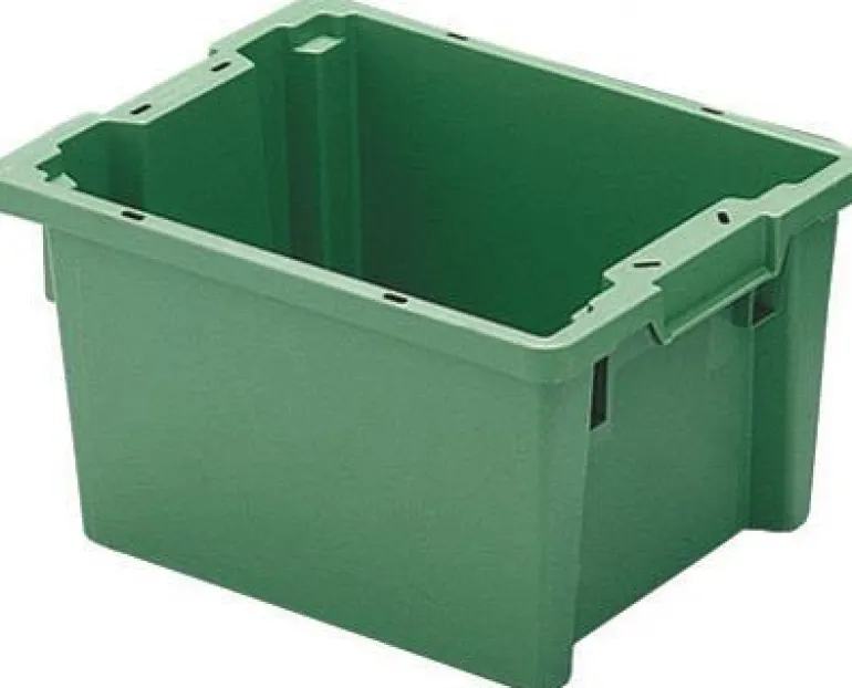Polypropeenia. Kestää -40 °C…+100 °C:n lämpötiloja. Pinottava ja kasattava. Kun vaihdetaan pinosta kasattavaan, laatikkoa käännetään puoli kierrosta. Sopii rullakonttiin ja EURO-lavalle. Vähintään 100 kappaleen tilaukset voidaan toimittaa yrityksen omalla painatuksella.