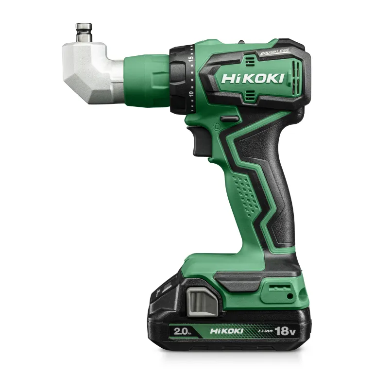 HiKOKI DS18DDQ on kulma-adapteri ¼” -kuusiokiinnityksellä (porakoneelle DS18DDQ). Pikalukitustoiminnolla. Pyörimissuunta oikealle/vasemmalle.