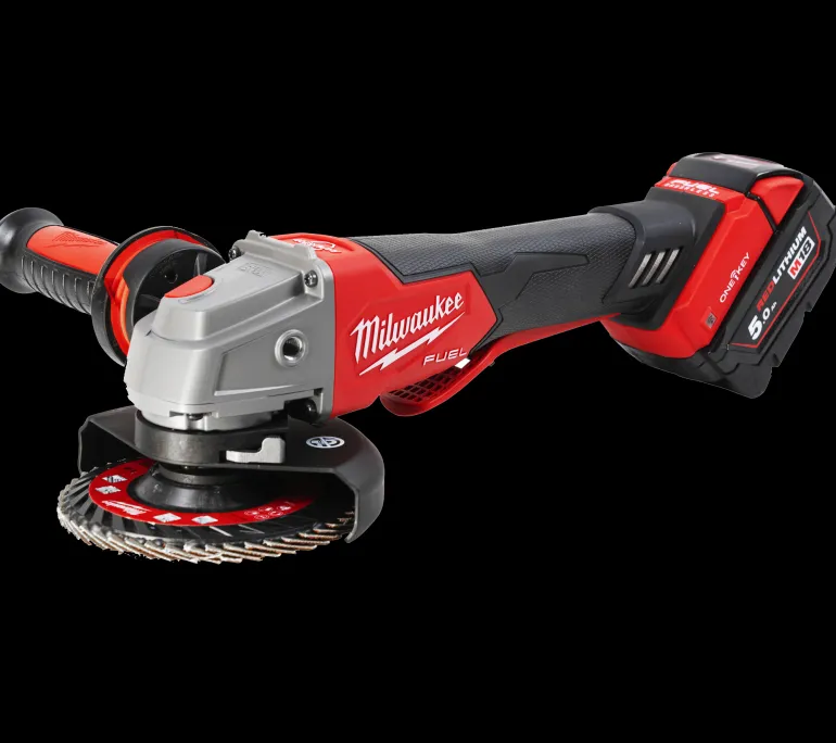 M18 FUEL ONE-KEY 125 mm kulmahiomakone, joka tuottaa 1200 W sähkökäyttöistä työkalua vastaavan tehon. Pienempi vaihdepään koko, ohut kahvan muotoilu ja akkukotelon matalampi kulma parantavat tasapainoa ja ergonomiaa.
