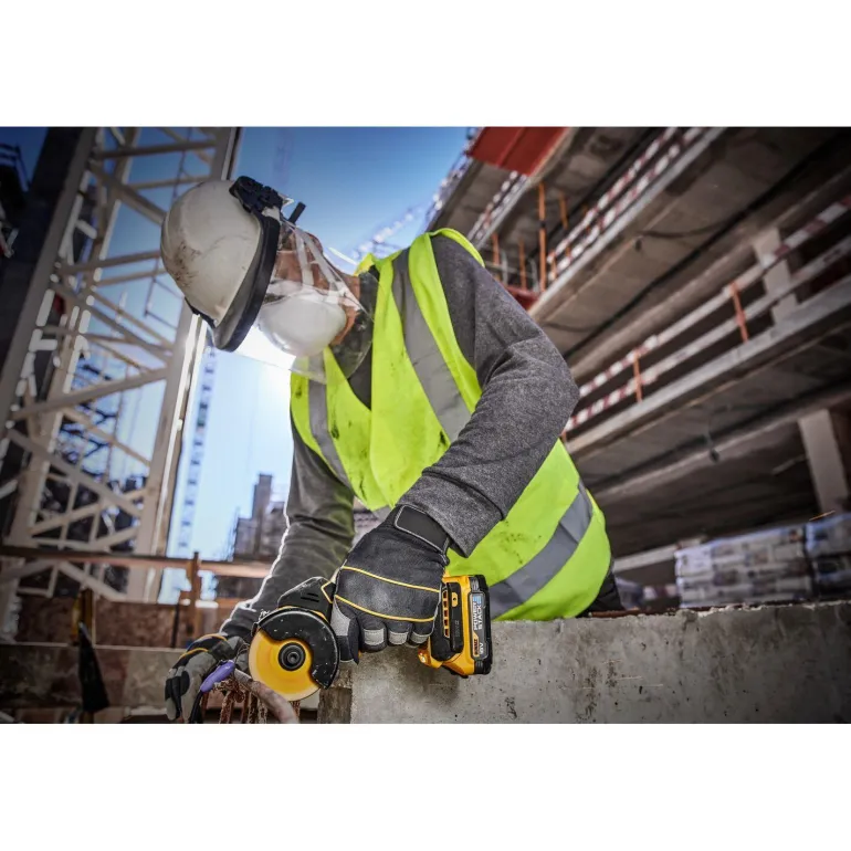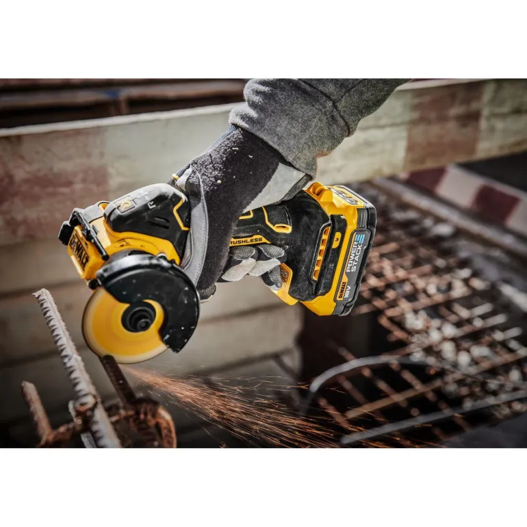 Tehokas 18 V:n XR-multi-kulmahiomakone. Kestävä työkalu, jonka kuormittamaton nopeus on 20 000 rpm, on suunniteltu leikkaamaan erilaisia materiaaleja, kuten metallia, laattoja, kiveä, muovia ja kipsiä/kuitusementtiä.