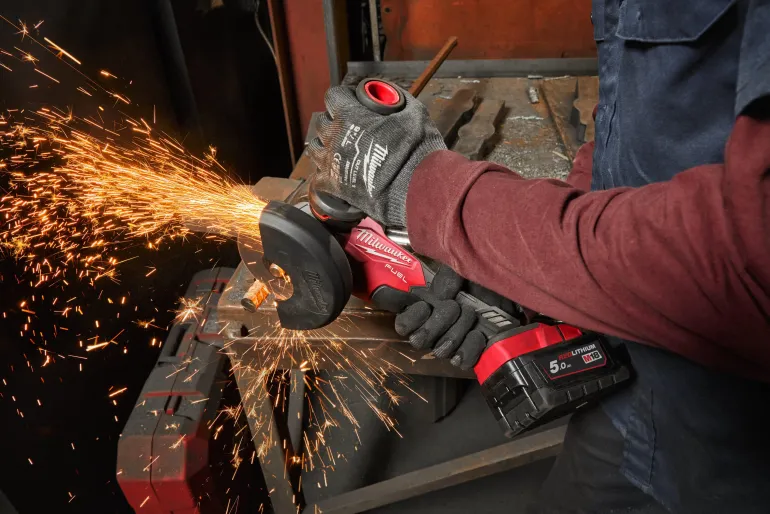 M18 FUEL 125 mm kulmahiomakone, joka tuottaa 1200 W sähkökäyttöistä työkalua vastaavan tehon. Pienempi vaihdepään koko, ohut kahvan muotoilu ja akkukotelon matalampi kulma parantavat tasapainoa ja ergonomiaa.