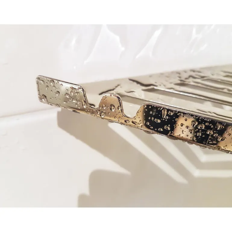Design4Bath GLD8006 on kulmahylly kiiltävästä kiillotetusta ruostumattomasta teräksestä, integroidut koukut. Hylly on helppo asentaa ilman tarpeettomia reikiä seinään. Pakkaukseen sisältyvällä Design4Bathin liimalla hylly asennetaan nopeasti, helposti ja turvallisesti. Hylly on mitoitettu siten, että taittuvat suihkuseinät (puolipyöreät) voidaan taittaa nurkkaan osumatta hyllyyn. Hyllyssä on myös integroidut koukut lisävarusteille, kuten harjoille, puhdistustyynyille tai vastaaville. Mukana toimitetaan liima ja puhdistussarja.