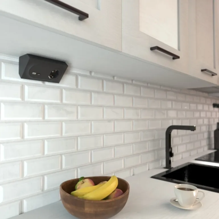 ELKO One kulmakotelon keskiosa (pintakehys). 1-osainen kulmakotelo muodostuu yhdistämällä kaksi päätyosaa. Keskiosan sisällyttäminen muodostaa 2-osaisen kulmakotelon. Niinpä voit helposti luoda 1-5 osaisia kulmakoteloita lisäämällä lisää keskiosia. Muodostettavat kotelot sopivat sekä vaaka- että pystysuuntaiseen asennukseen. Tuotteen mitat ovat (L) 87 mm x (K) 98 mm x (S) 47 mm. Se on valmistettu kierrätetystä polykarbonaatista (PC). Tuotteen väri on musta (RAL 9005) ja se on mattapintainen. Suojaustaso on IP21 ainoastaan, jos kaapeli tulee alakautta. Muussa tapauksessa suojaustaso on IP20.