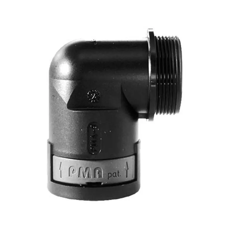 Kulmaliitin pikaliitännällä, joka sopii useimpiin letkuihin. Polyamidi 6 -materiaalia, joka takaa korkean iskunkestävyyden.