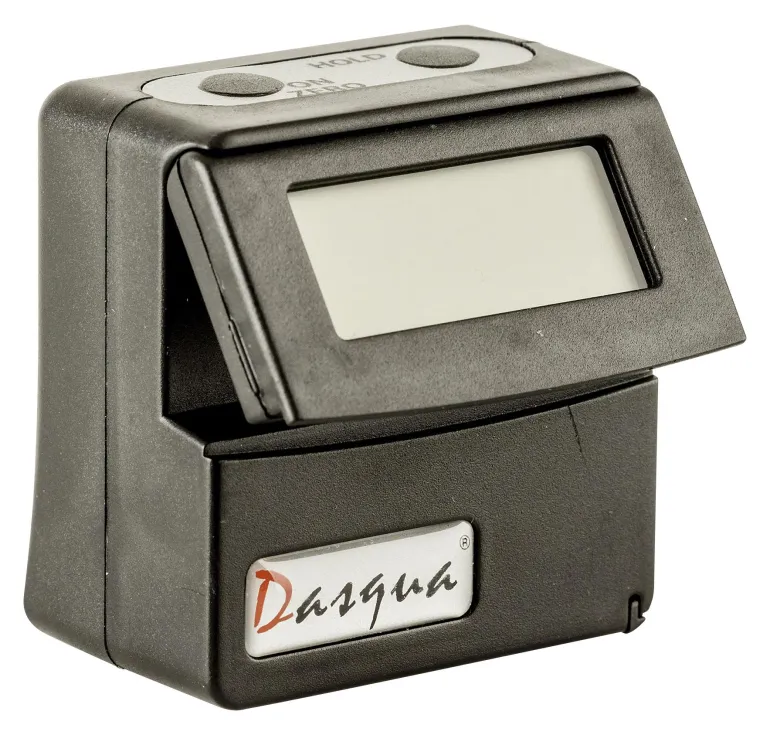 Dasqua 495217 on digitaalinen kulmamittari (55x58x32 mm) magneettisella pohjalla. Luvut kääntyvät oikein päin mitatessa. Kulmamittaria käytetään esimerkiksi sahaukseen ja poraukseen liittyvässä mittaamisessa, se mittaa sekä absoluuttisen että suhteellisen kulman.