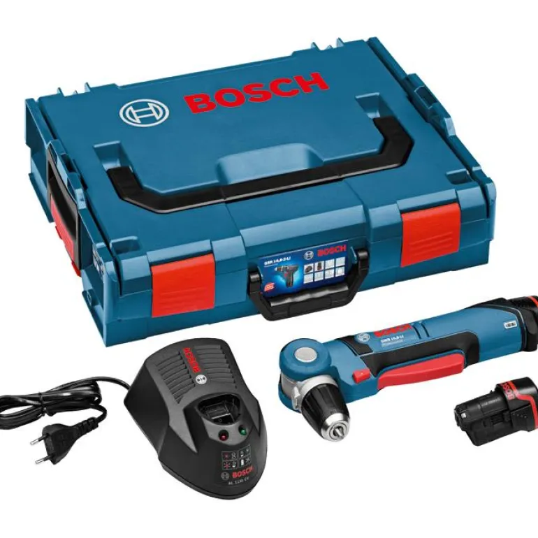 Kulmaporakone (10,8 V). Viisiasentoisen pään ja kapean rakenteen ansiosta sillä pääsee myös ahtaisiin tiloihin.
