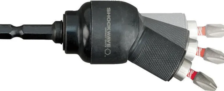 Offset-kulmaliitäntä iskutoiminnolla raskaisiin käyttötarkoituksiin. Voidaan käyttää viimeisimpien 18V akkuruuvinvääntimien ja akkuiskuporakoneiden kanssa. Mukana PZ, PH ja Torx-kärjet.