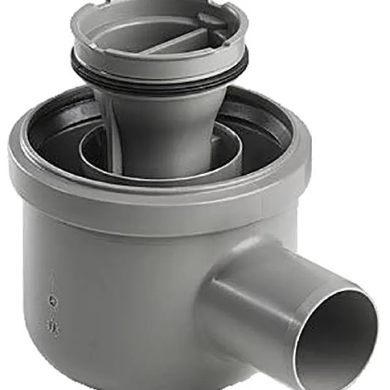 Kulmaviemäri Ø 50 mm sivu-ulostulolla. Viemäri toimitetaan itsepuhdistuvalla vesilukolla, ja sitä voidaan kiertää 180° viemäriputkien liittämistä varten.