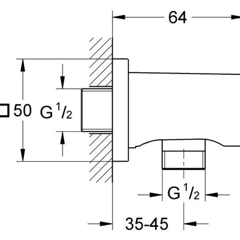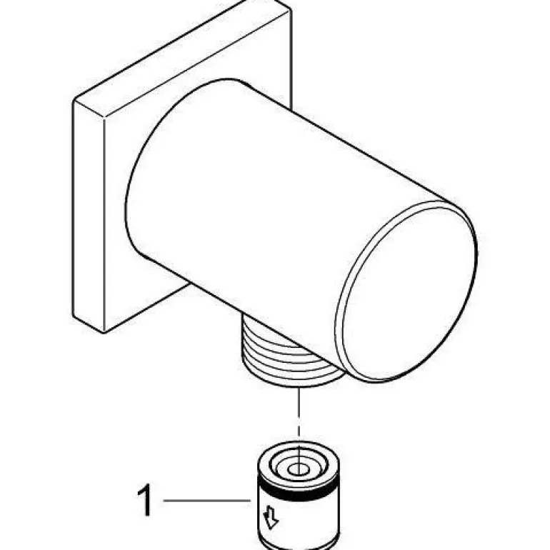 Takaiskuventtiili GROHE StarLight -kromipinnalla takaisinvirtauksen estämiseksi. Ulkokierre ja neliön muotoinen peitelevy.