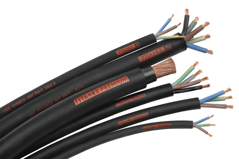 TITANEX H07RN-F 450/750 V on öljyn- ja rasvankestävä taipuisa kaapeli, joka kestää suuria lämpötilamuutoksia, kosteutta ja pakkasta. Sitä voidaan käyttää väliaikaisiin asennuksiin sisällä ja ulkona.