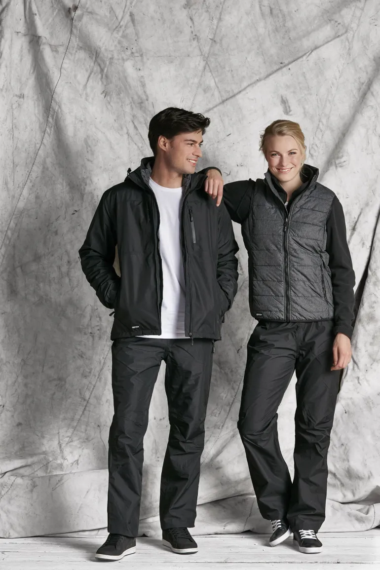 Tuulenpitävät ja vettähylkivät kuorihousut ripstop-kudottua polyesteriä. Teipatut saumat ja säätönyörillinen kuminauhavyötärö.