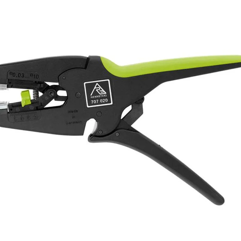 Rennsteig 707020 on kuorintapihti optimoidulla kahvalla ja turvatoiminnolla. Täysautomaattinen säätö kaikille kiinteille, moni- ja hienojohtimille, joissa on PVC-eristys ja useita erikoiseristeitä, joiden kapasiteetti on 0,03–10,0 mm².