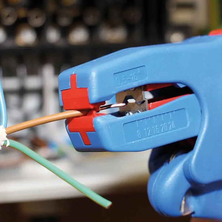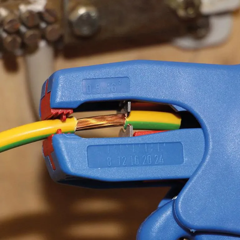 Itsesäätyvä kaapelikoon 0,5-16,0 mm² mukaan, pituuslukitsin ja leikkuri. Vaihdettavalla sisäterällä.