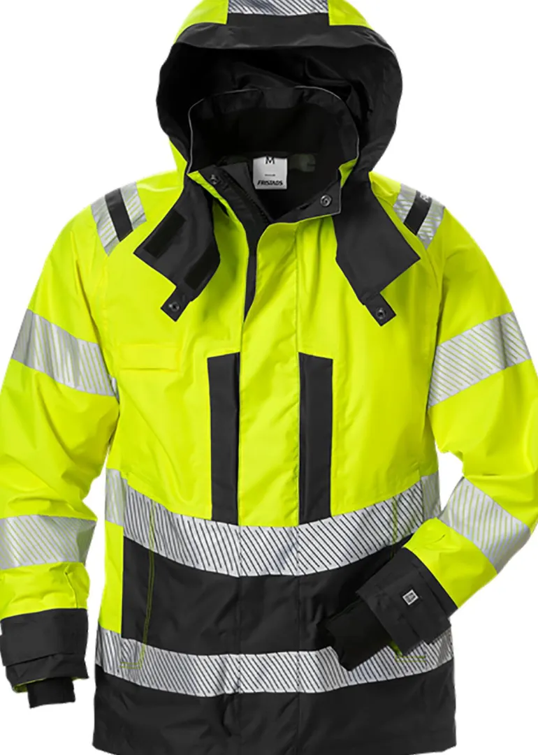 Kuoritakki veden- ja tuulenpitävästä Airtech-materiaalista. Hengittävä. Takissa on irrotettava ja säädettävä huppu, fleecevuorillinen kaulus, heijastavat yksityiskohdat olkapäillä, verkkovuori ja pidennetty selkäosa. Kuoritakki on Öko-Tex-sertifioitu ja hyväksytty standardin EN ISO 20471 luokan 2 (koot XS–S) ja luokan 3 (koot M–3XL) sekä standardin EN 343 3/3 mukaisesti. Se on testattu teollisen pesustandardin ISO 15797 mukaisesti. Väri 396 on saatavana tilauksesta.