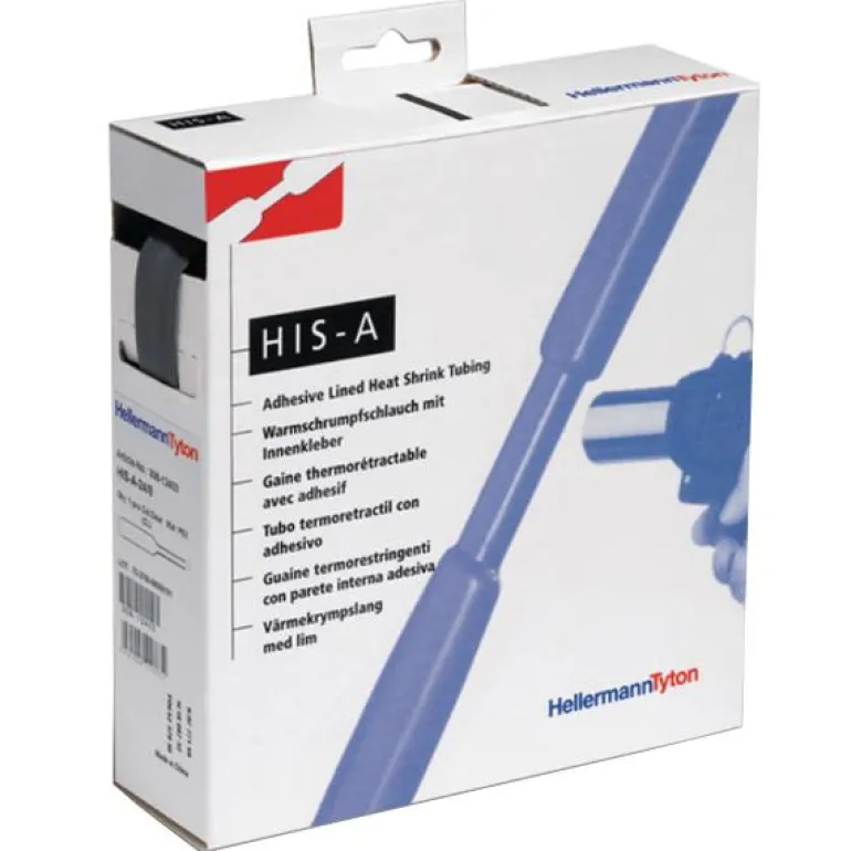Hellermann Tyton HIS-A on kaksiseinämäinen, liimallinen kutistemuoviletku, jonka kutistussuhde 3:1. Soveltuu suojaamiseen kosteudelta, korroosiolta, mekaanisilta vaurioilta jne. Sisäseinämä sulaa kuumennettaessa ja täyttää epätasaisuudet. Kutisteletkun kokonaispituus on 10 metriä, kutistumaton halkaisija 3 mm, kutistettuna halkaisija 1 mm. HIS-A:n kutistussuhde on 3:1, joten se voi korvata monia erikokoisia letkuja, koska se soveltuu lähes mihin tahansa käyttötarkoitukseen. Täyttöteline mahdollistaa käytännöllisen ja pölyttömän säilytyksen myös pakkausten avaamisen jälkeen.