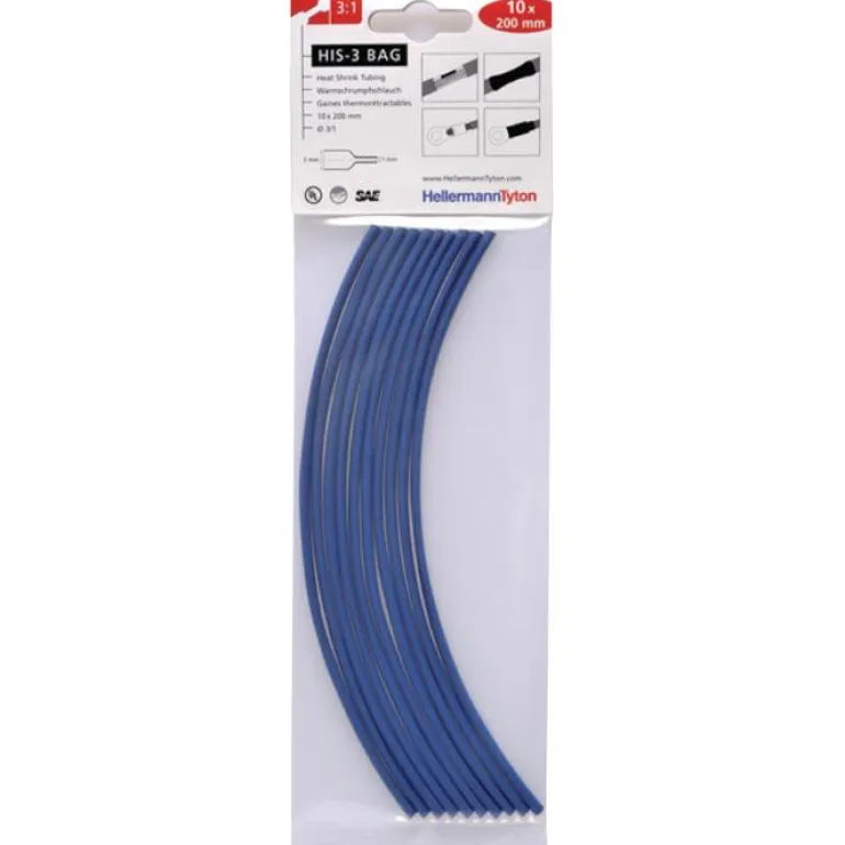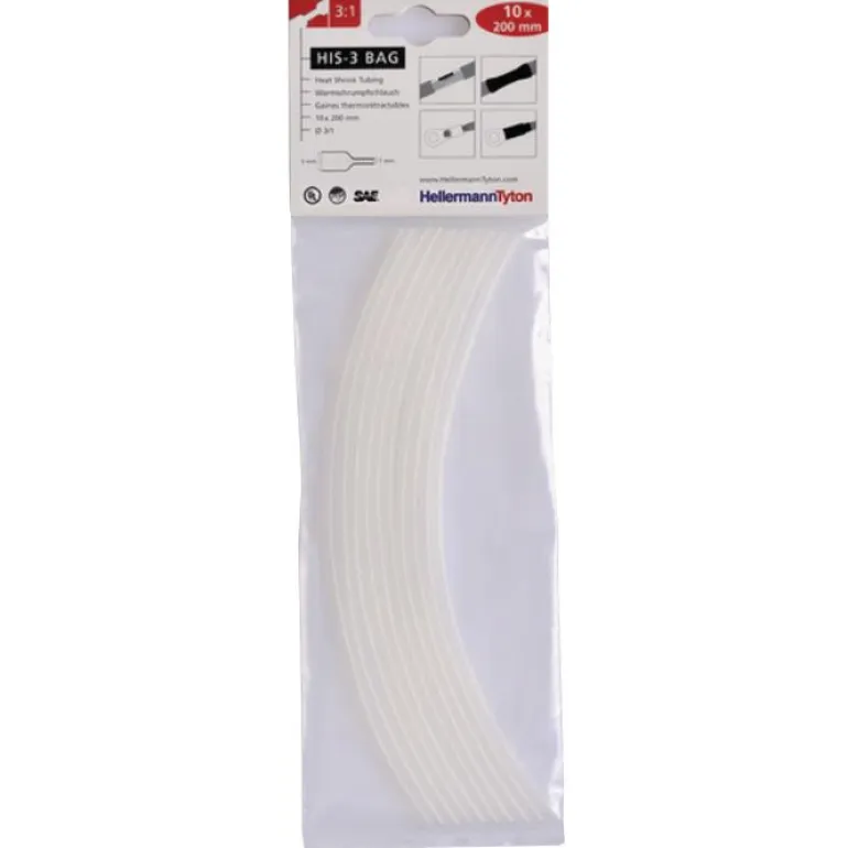HIS-3 Bag -kutistemuoviletkupakkaus kaapelien ja liitinten eristämiseen ja suojaamiseen. HIS-3 Bag -pakkauksen ohutseinämäisten ja joustavien kutistemuoviletkujen halkaisija on 3/1 mm (kutistumaton/kutistettu). Kutisteletkut on valmistettu ristisilloitetusta polyolefiinista. Pakkaus sisältää 10 määrämittaista 200 mm:n letkua.