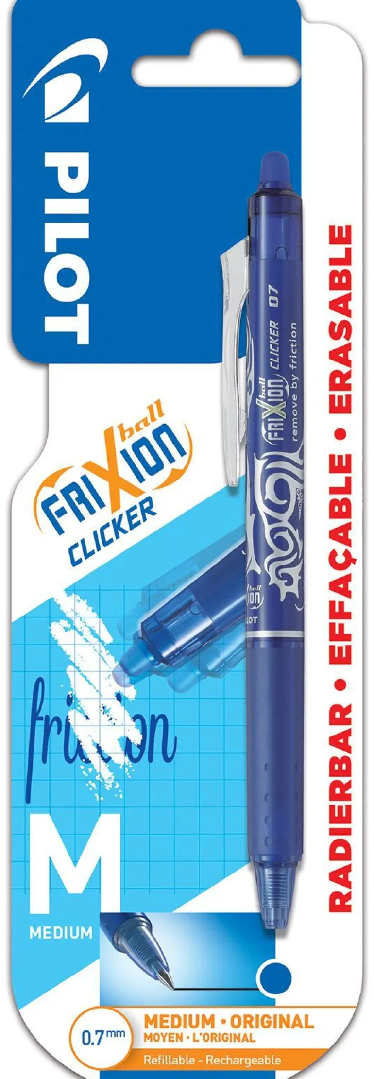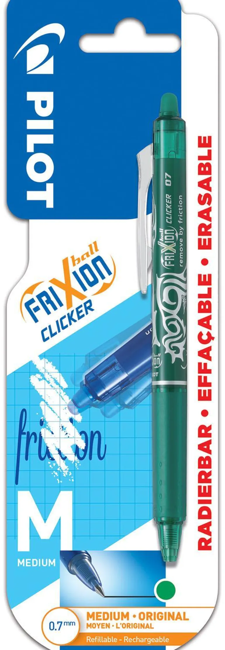 Pilot FriXion Ball Clicker on kuulakynä innovatiivisella lämpöherkällä pyyhittävällä musteella, jonka avulla voit kirjoittaa ja pyyhkiä niin monta kertaa kuin haluat. Muste on pehmeää ja miellyttävää, tarjoten erinomaisen kirjoitustuntuman. Kynässä on 0,7 mm leveä kärki ja sitä on saatavana useissa väreissä.