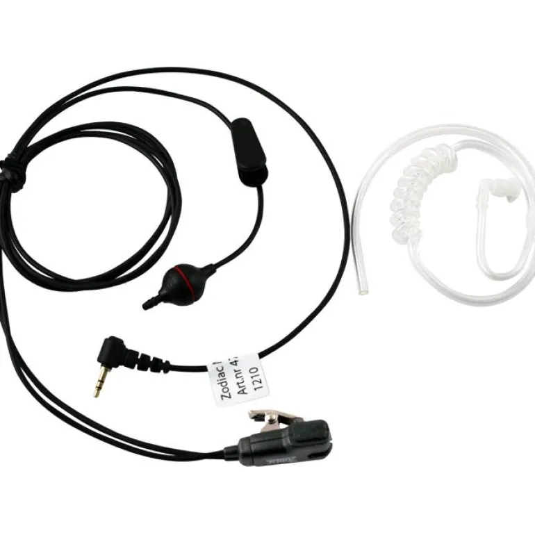 Secret service -kuulokemikrofoni Zodiacilta hälyiseen ympäristöön ja erilaisiin vartiointitehtäviin. Huomaamaton korvanappi ja mikrofoni. Sopii Micro 446:een.