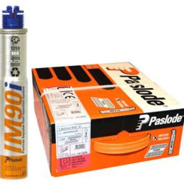 Kaasupatruuna ja kuumasinkityt naulat. Pyöreä kanta 34°. Sopii seuraaville laitteille: Paslode IM90Ci ja IM100Ci.