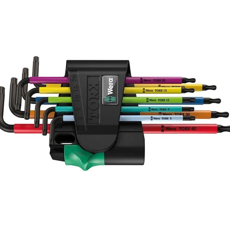 9 kpl pakkaus muovipäällysteisiä kuusiokoloavaimia torx-ruuveille. Mukana käytännöllinen pidike.