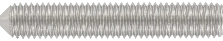 Kuusiokolopidätinruuvi S6SS, jossa metrinen kierre, sisäinen kuusikulmio ja terävä pää standardin ISO 4027 (DIN914) mukaisesti.