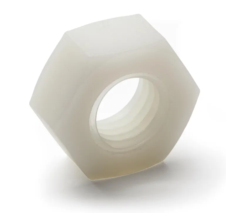 M-kierteinen kuusiomutteri M6M, standardin DIN 934 mukainen. Valmistettu nailonista (DIN 555).