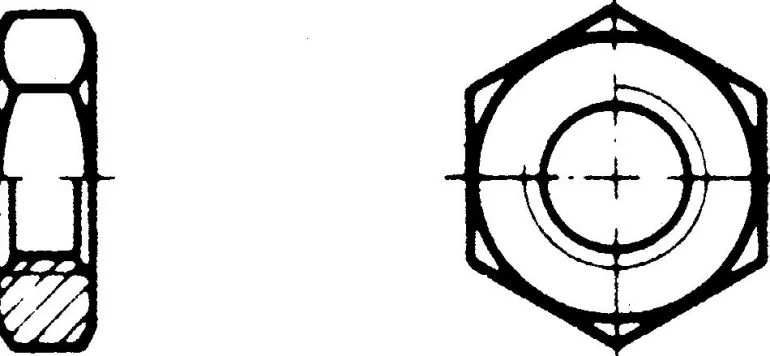 M-kierre. Kuusiomutteri, matala malli, DIN 439 B (ISO 4035):n mukainen.