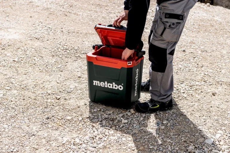 Akkukäyttöinen 18 V:n kylmälaukku aktiiviseen viileänä tai lämpimänä pitämiseen – ilman verkkovirtaa missä ja milloin tahansa. Kolme käyttötapaa: käyttö Metabo/CAS 18 V -akuilla, virtajohdolla tai 12 V:n adapterikaapelilla (auto).